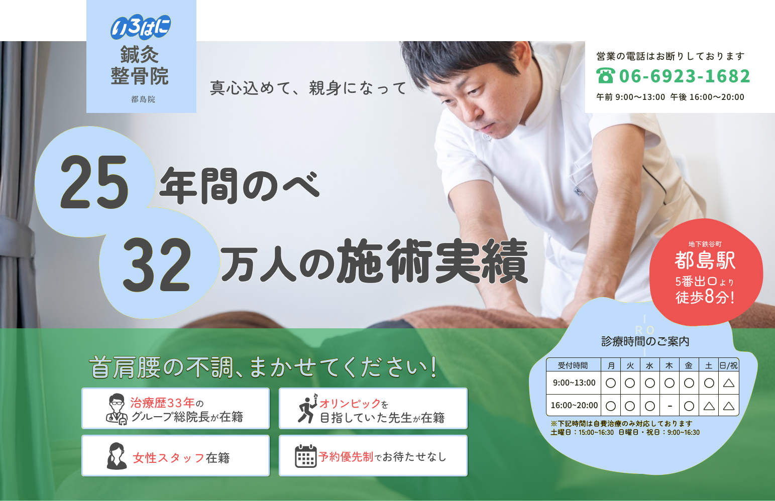 この度は、いろはに整骨院 鍼灸院 都島院のホームページをご覧いただき誠にありがとうございます。当院は開院以来、さまざまな患者様の症状と向き合いながら施術を行ってまいりました。